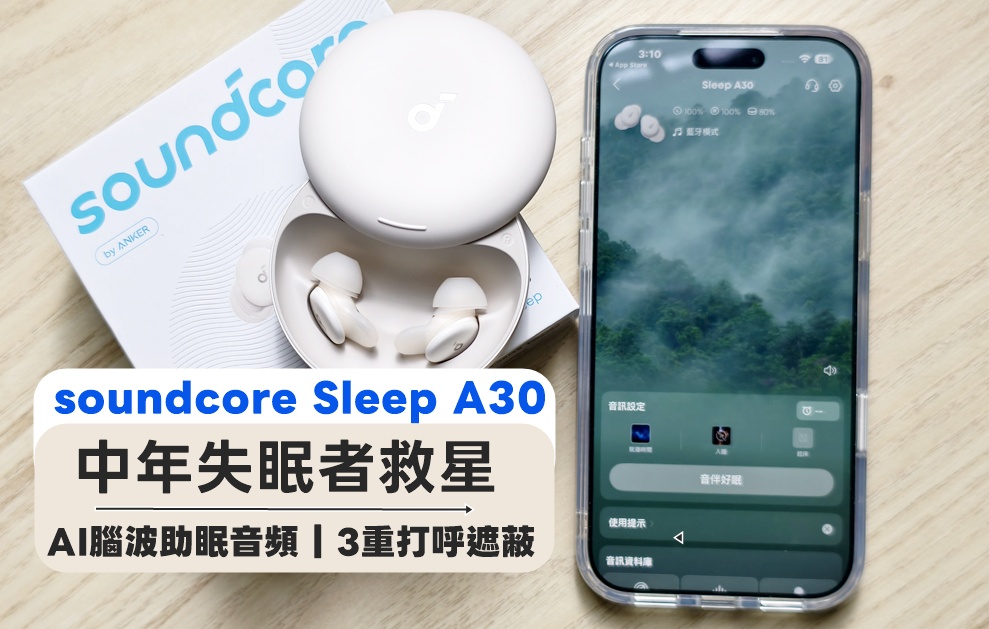 【開箱】中年失眠者救星! soundcore Sleep A30 | 側睡不痛,三重遮蔽鼾聲、AI白噪音、30dB降噪