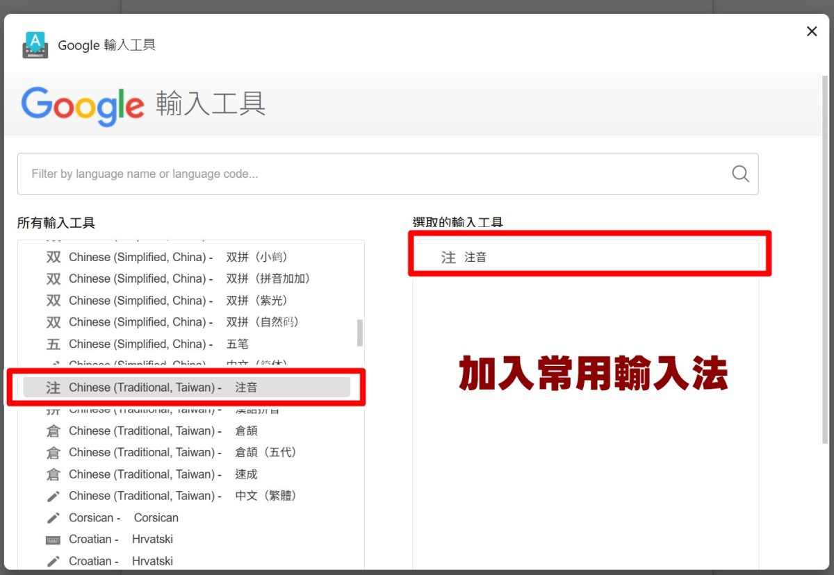 打開擴充功能選項,將常用的輸入法加入,例如我常用的注音