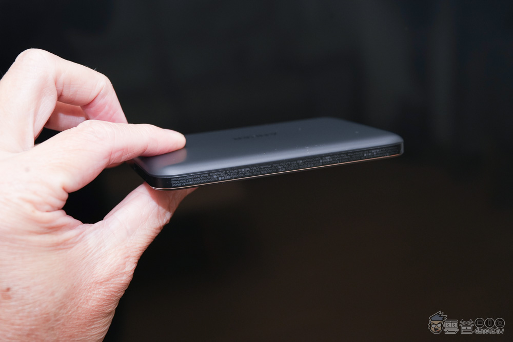 下方有4顆電量燈號 + USB-C孔,可支援20W輸入/輸出