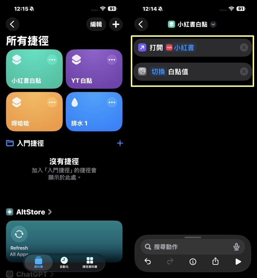這個需要每個APP各自設定,開&關都要作一次捷徑,小麻煩