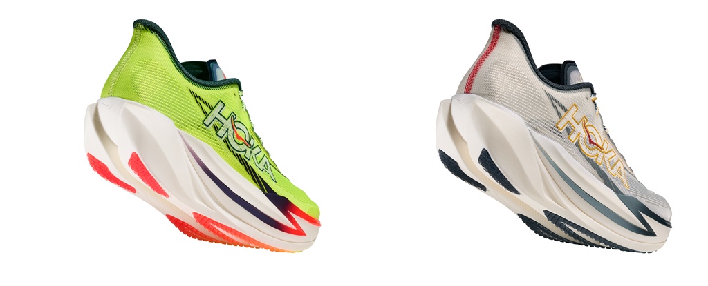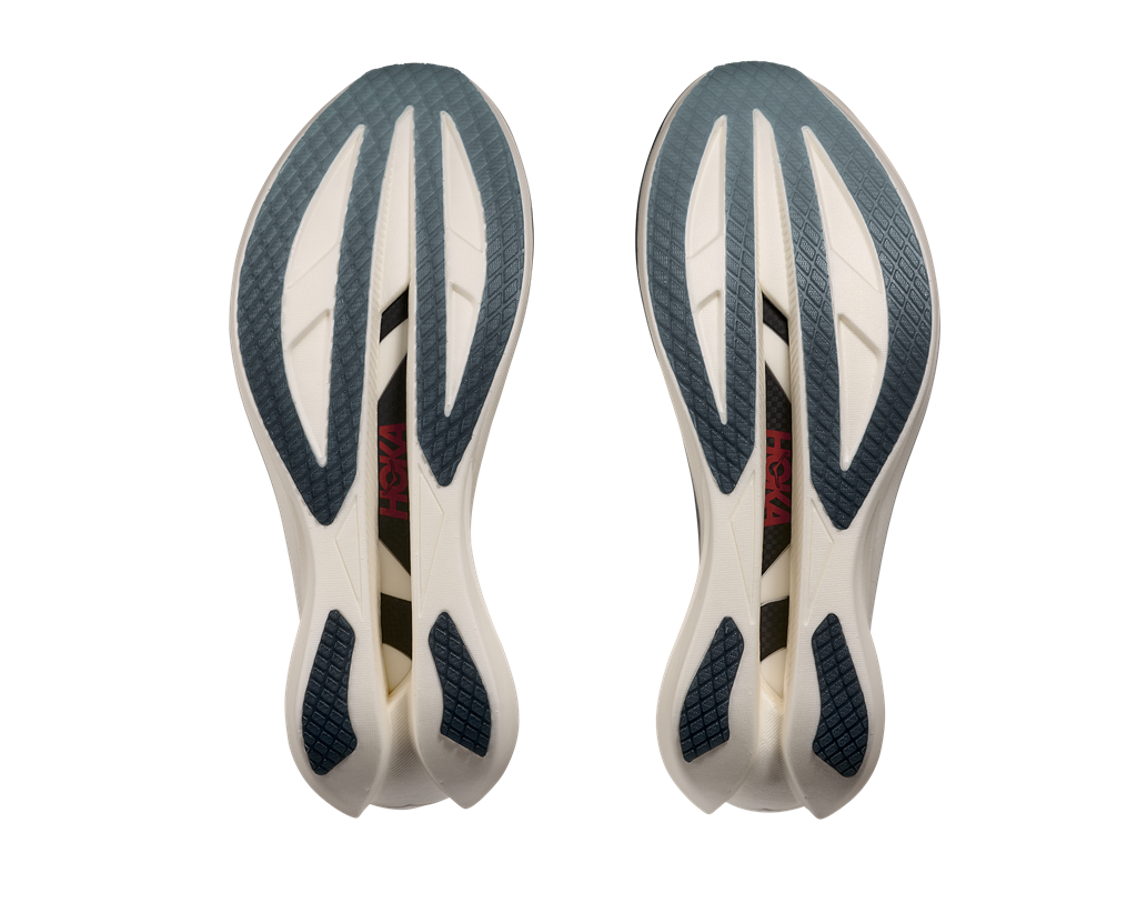 中底採用雙層 PEBA 泡棉配置,提供高回彈與柔軟腳感,並搭配全新推進式碳纖維板,讓跑者在推蹬階段能更直接地將力量轉化為向前動能。HOKA 表示,該結構主要針對高步頻與高速巡航時的能量回饋進行優化。