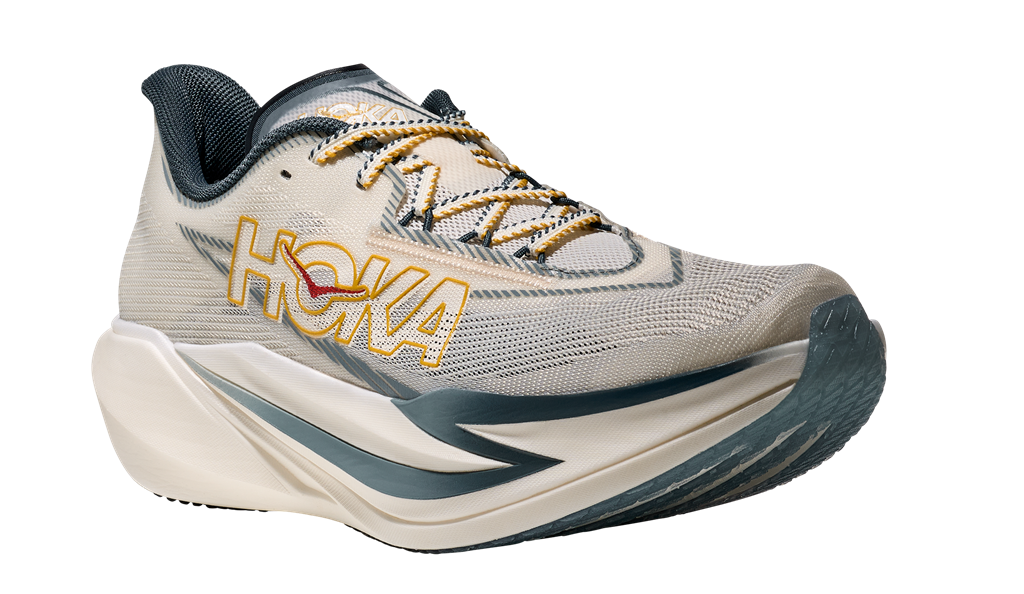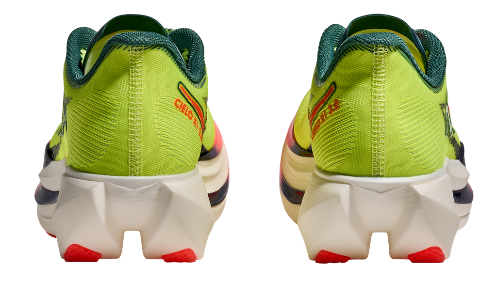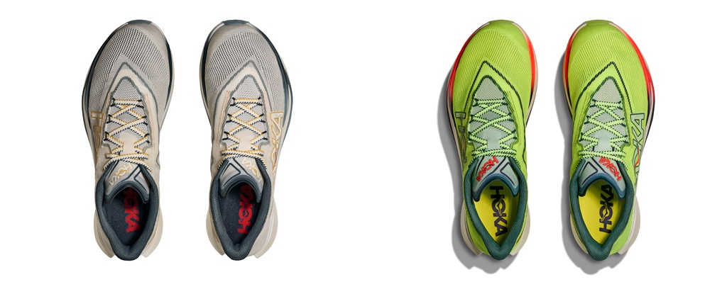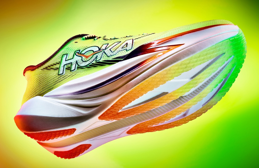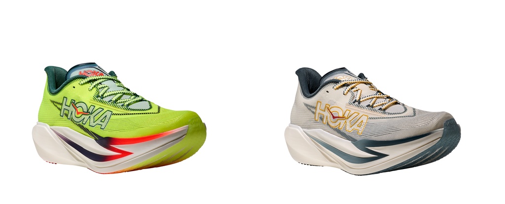 外型設計以流線輪廓為基礎,搭配螢光元素與大面積 HOKA 標誌,提高賽道辨識度,整體風格偏向「競速科技感」,而非日常訓練取向。