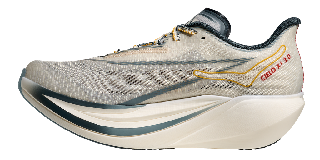 鞋面部分,Cielo X1 3.0 採用高科技 Leno 編織鞋面,搭配彈性動態結構,兼顧包覆性與透氣表現。不對稱鞋帶設計則進一步加強中足鎖定,在高速移動下維持腳部穩定。