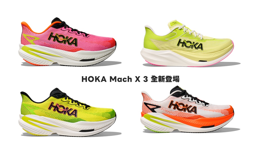高飽和螢光色彩讓跑者在賽道上氣勢全開。Mach X 3 定價 NT$6,480,9 月 3 日起於全台 HOKA 通路販售。