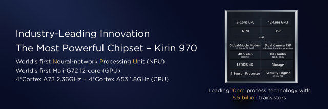 本次發表兩款機種,皆搭載麒麟970 八核心處理器,加上Mali G72 12核GPU