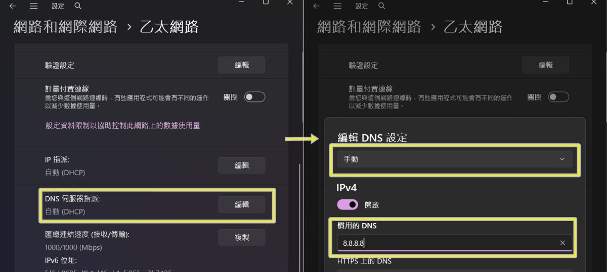 6. 請直接更改成8.8.8.8 或 1.1.1.1
