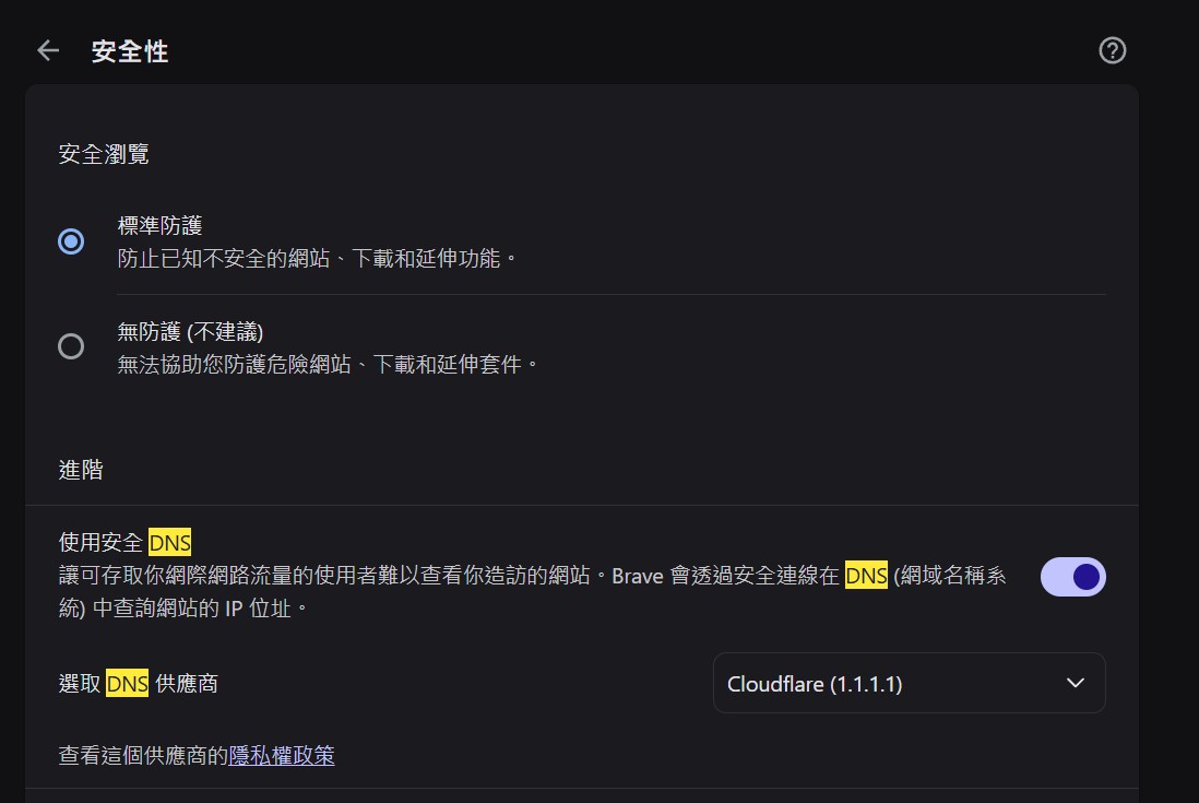 概念跟上面的Brave 一樣,都是修改DNS設定