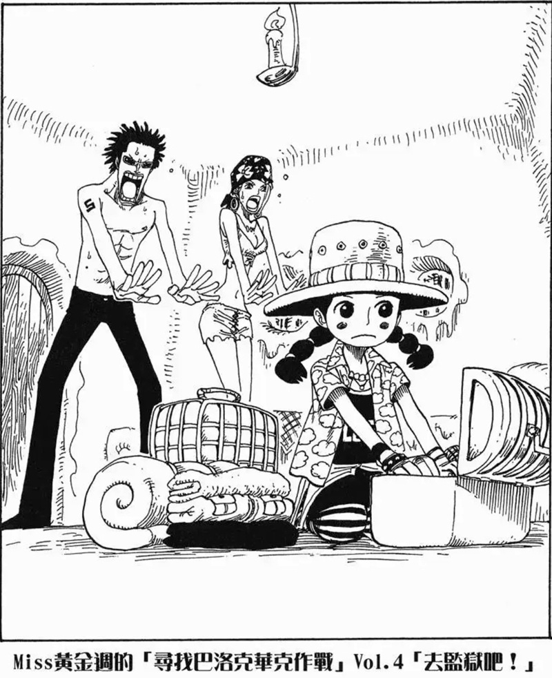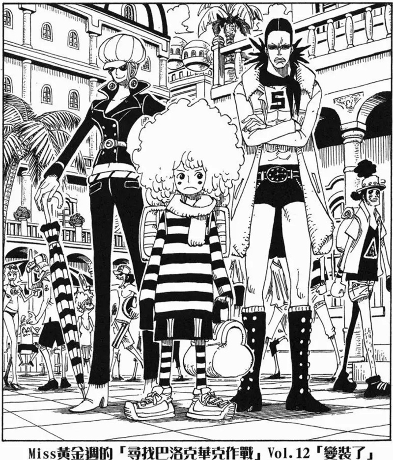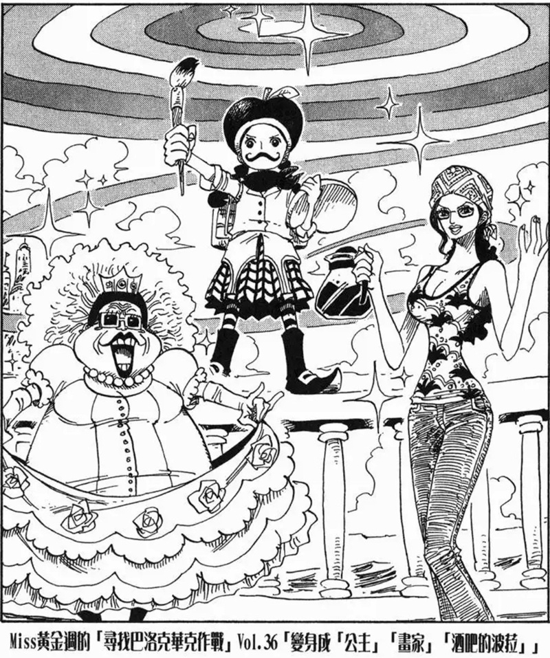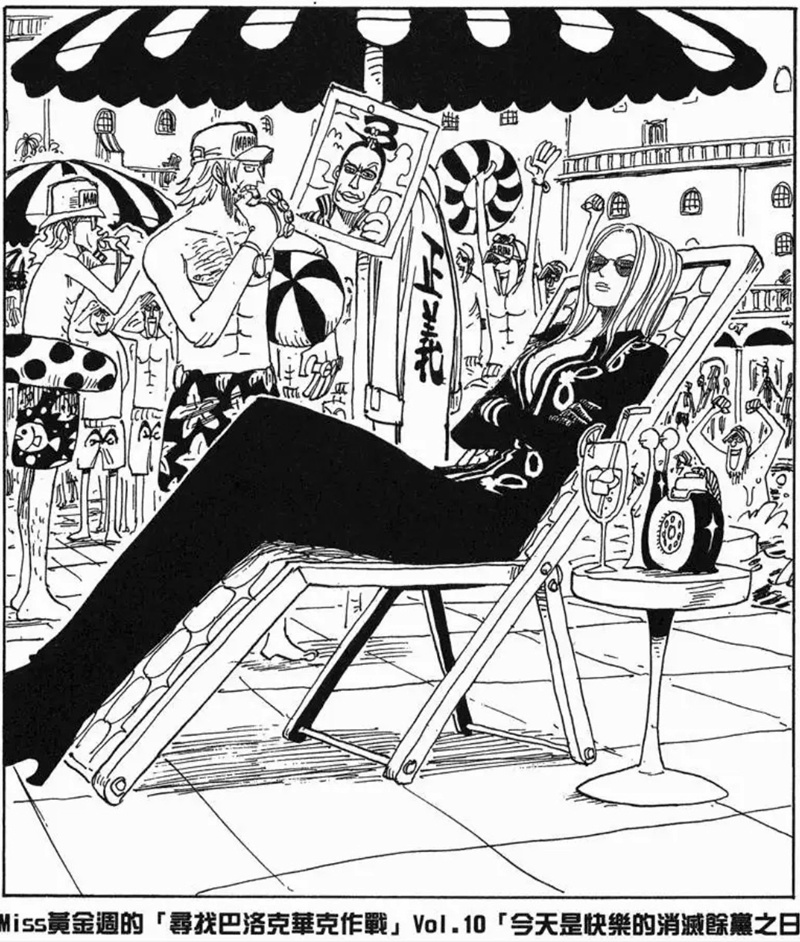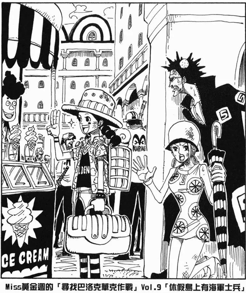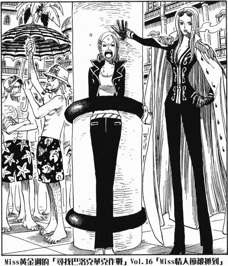 Miss黃金週的「尋找巴洛克華克作戰」是第八個刊頭連載,故事發生在阿拉巴斯坦篇與推進城篇之間。她與Mr.5、Miss情人節為了尋找同夥而行動,卻誤闖海軍度假村並引發混亂。雖然一度有人被捕,但在Mr.2協助下成功解救其他特務。不過最後,Mr.0、Mr.1、Mr.2和Mr.3仍被押往推進城。