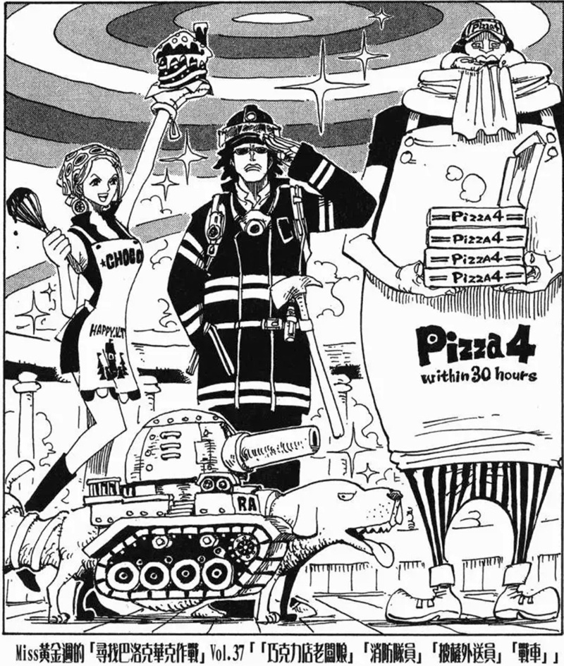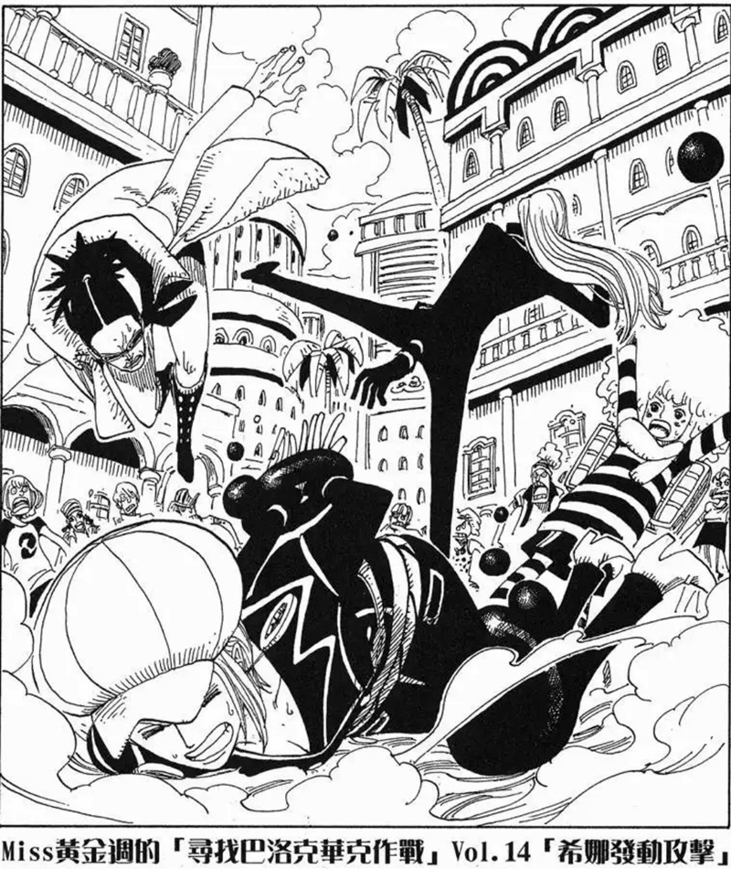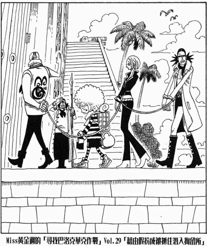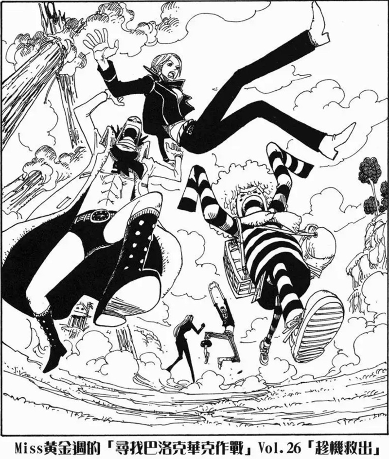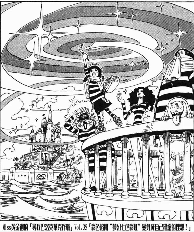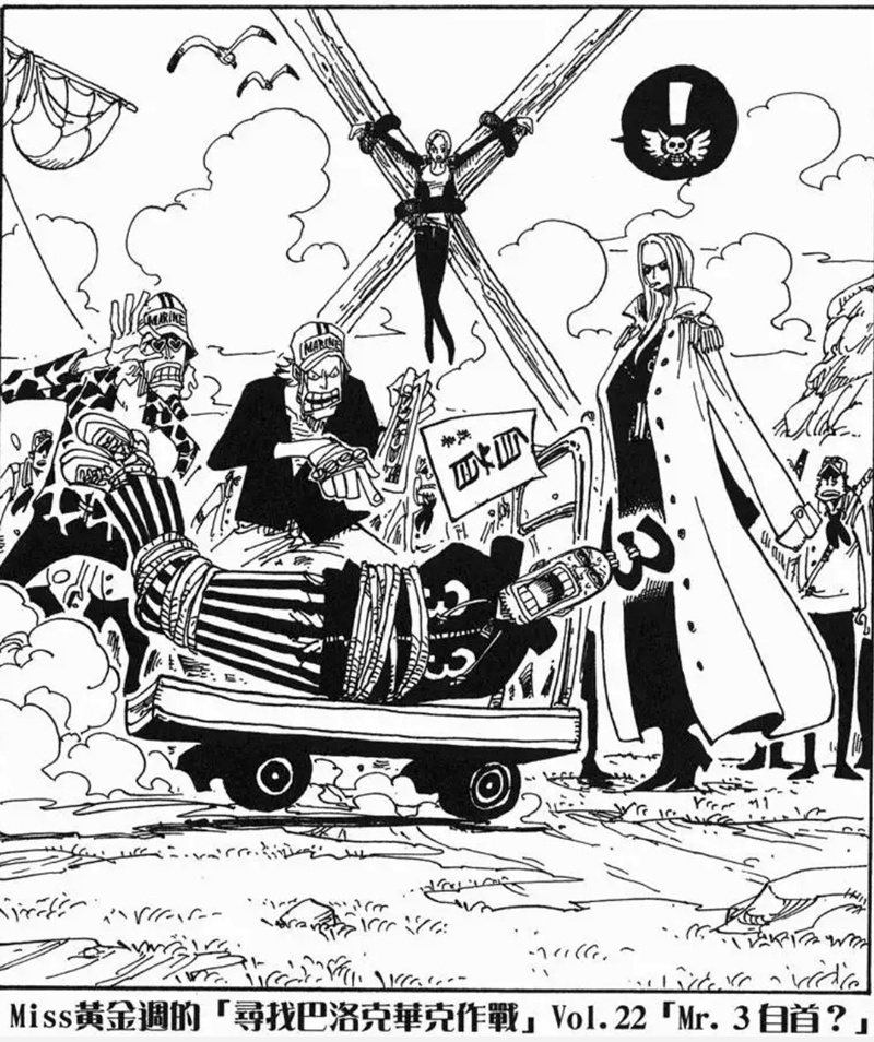Miss黃金週的「尋找巴洛克華克作戰」是第八個刊頭連載,故事發生在阿拉巴斯坦篇與推進城篇之間。她與Mr.5、Miss情人節為了尋找同夥而行動,卻誤闖海軍度假村並引發混亂。雖然一度有人被捕,但在Mr.2協助下成功解救其他特務。不過最後,Mr.0、Mr.1、Mr.2和Mr.3仍被押往推進城。