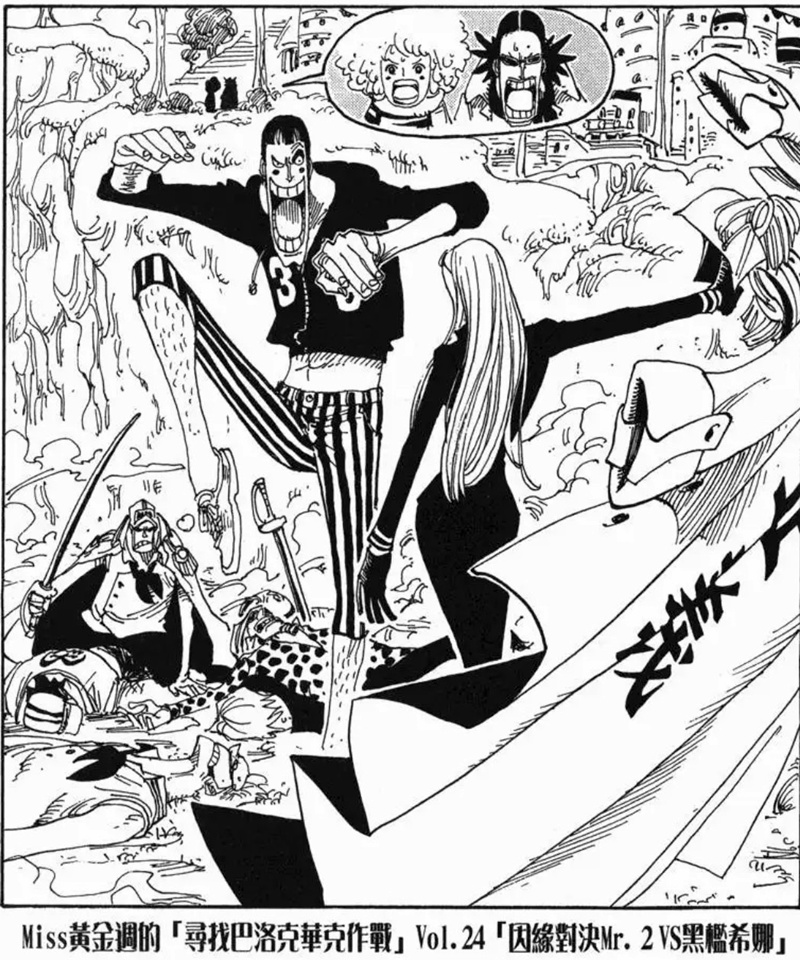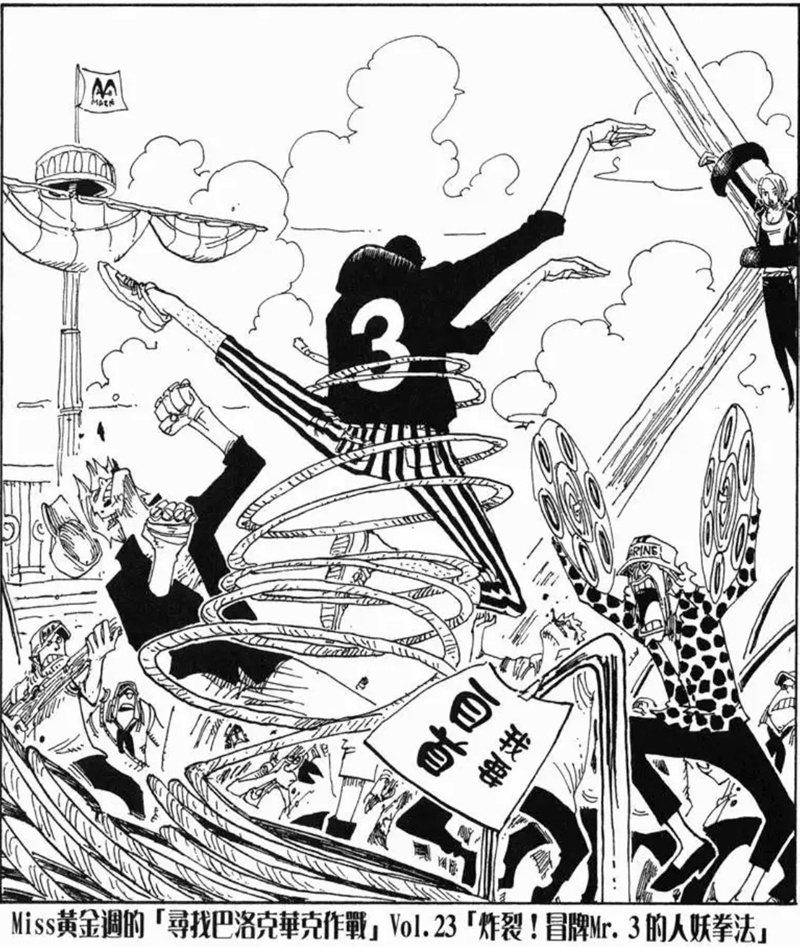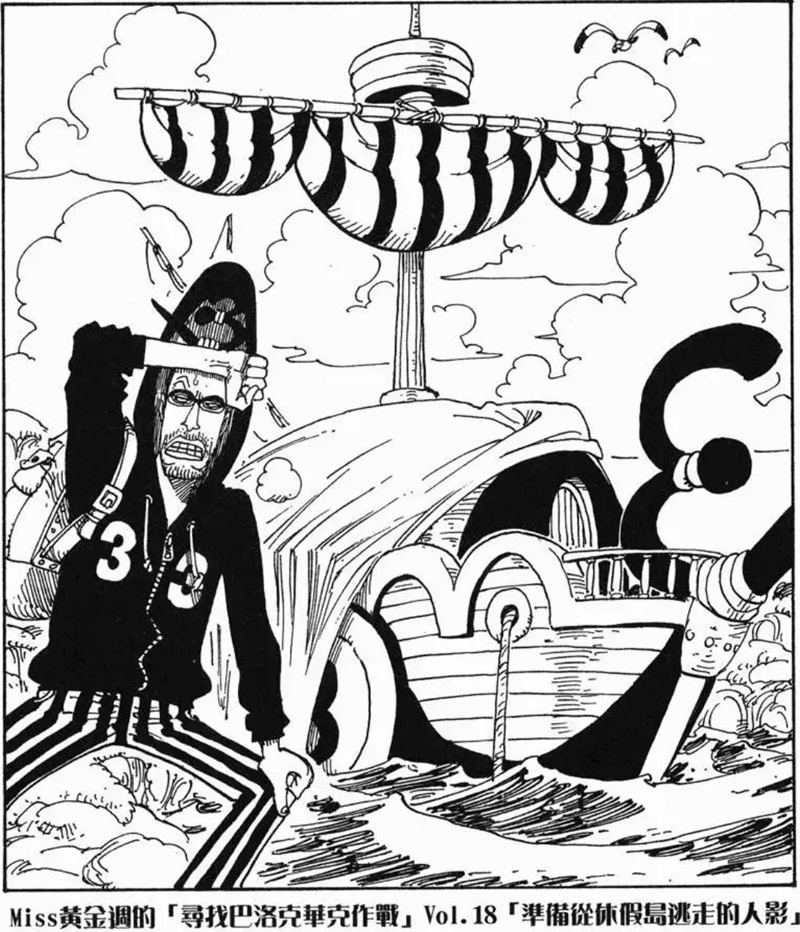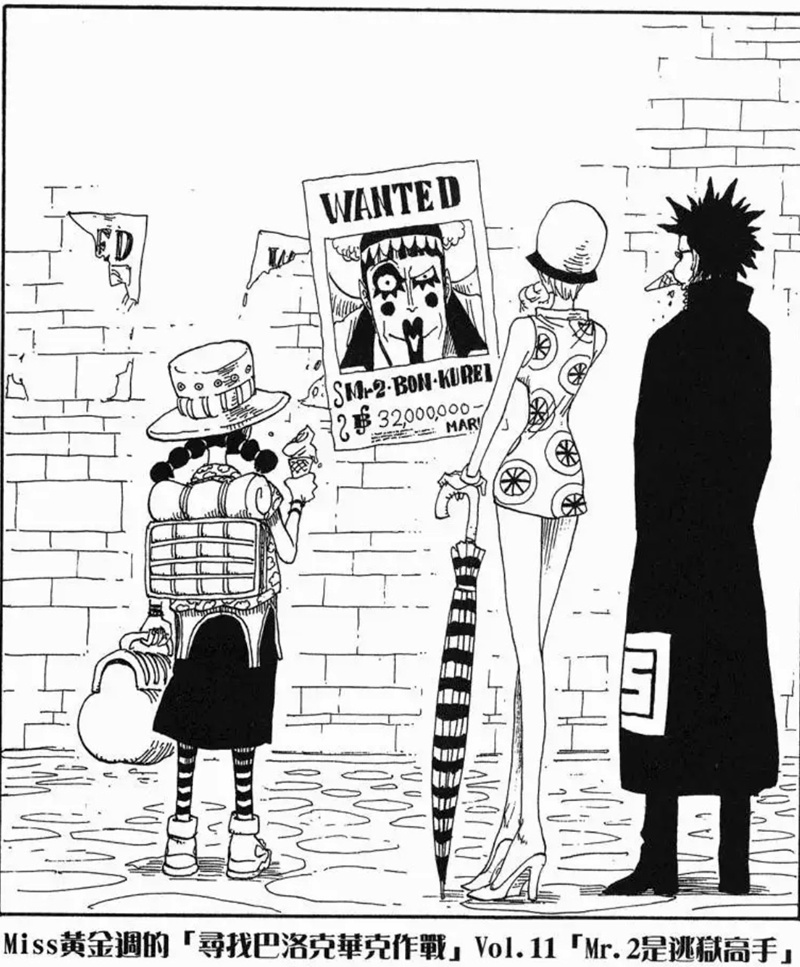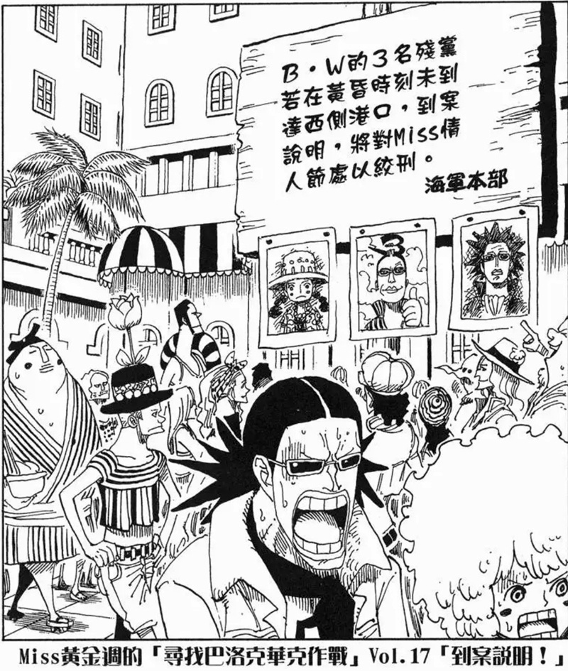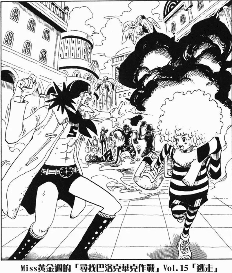 Miss黃金週的「尋找巴洛克華克作戰」是第八個刊頭連載,故事發生在阿拉巴斯坦篇與推進城篇之間。她與Mr.5、Miss情人節為了尋找同夥而行動,卻誤闖海軍度假村並引發混亂。雖然一度有人被捕,但在Mr.2協助下成功解救其他特務。不過最後,Mr.0、Mr.1、Mr.2和Mr.3仍被押往推進城。