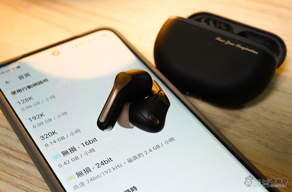 LDAC 最高可達 990kbps 的傳輸碼率,並支援 24bit / 96kHz 高解析音訊,理論上能比一般藍牙編碼保留更多音樂細節。